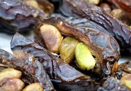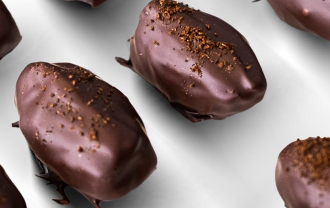 Selon la saison, nous fabricons aussi des truffes de dattes medjool enrobées de chocolate pur (100 pourcent sans sucre) et farcies d’amandes, de cacao pur et entre autres de pistaches.