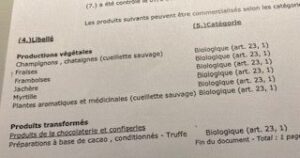 Certifiée “biologique” par ECOCERT pour les petits fruits, légumes, les champignons ainsi que pour nos truffes de chocolat